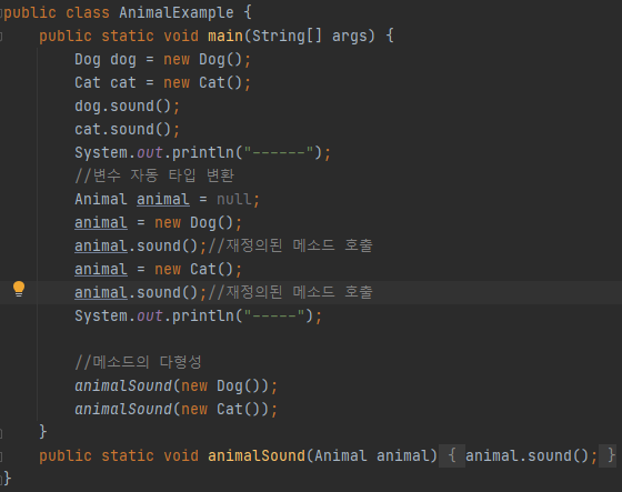 => cat과 animal 변수는 타입만 다를 뿐, 동일한 Cat 객체를 참조한다.