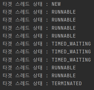 - 생성자 매개값으로 받은 타겟 스레드의 상태를 0.5초 주기로 출력한다.