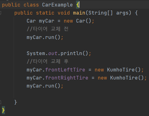 - 자동 타입 변환을 이용하면 필드의 다형성과 매개 변수의 다형성을 구현할 수 있다. 필드와 매개 변수의 타입을 인터페이스로 선언하면, 여기에 다양한 구현 객체를 대입해서 실행 결과를 다르게 할 수 있다.